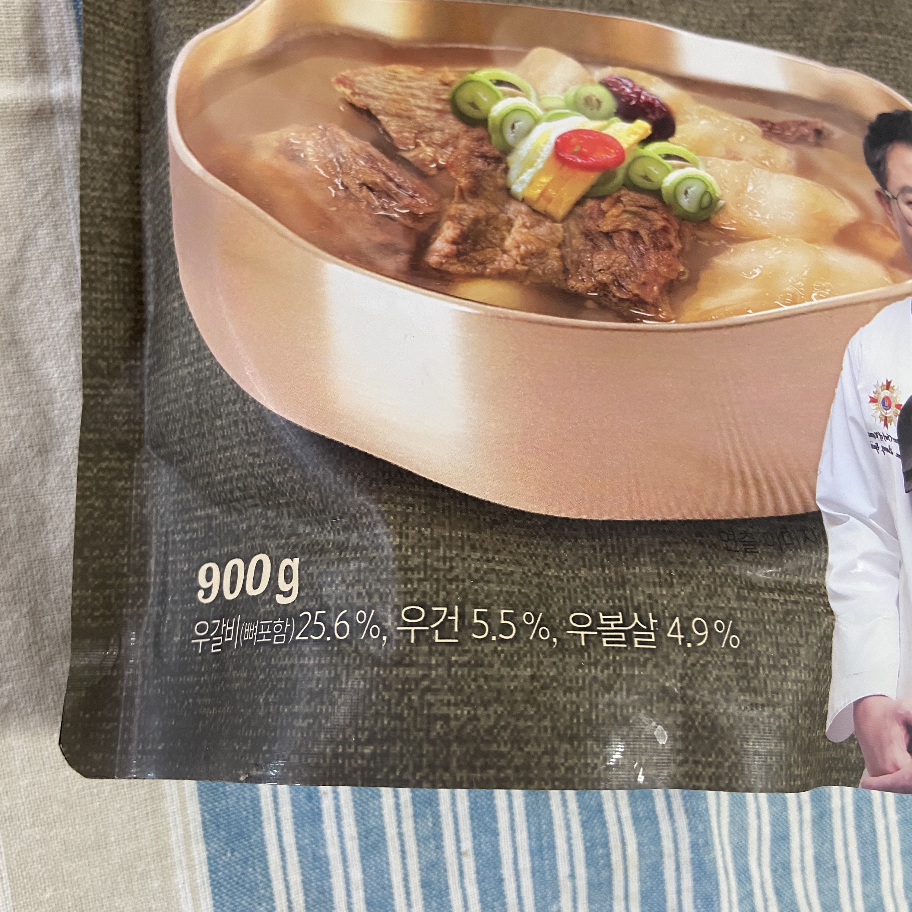 총 어느 정도의 무게가 들어갔는지, 소의 어느 부위가 들어갔는지, 하단 부분에 적혀있습니다. 중량은 900g입니다. 딱 2인분이더라고요. 소의 우 갈비, 우건, 우 볼살이 들어갔습니다. 우건이 어느 부위 인지 몰라서 검색해 보았더니, 소의 힘줄이라고 합니다. 이따가 사진으로 어느 부위인지 보여드릴게요.
